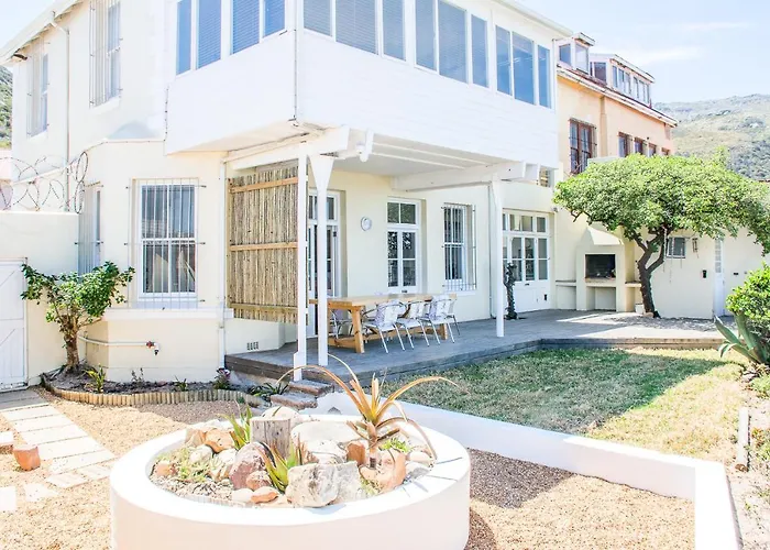 Fintimara Bay House Vr de 250 m^2 se trouve à 5 minutes de Fresh Fish, et dispose d'un accès rapide à Kalk Bay Modern. La villa comprend un balcon, un espace de repas et un bureau.